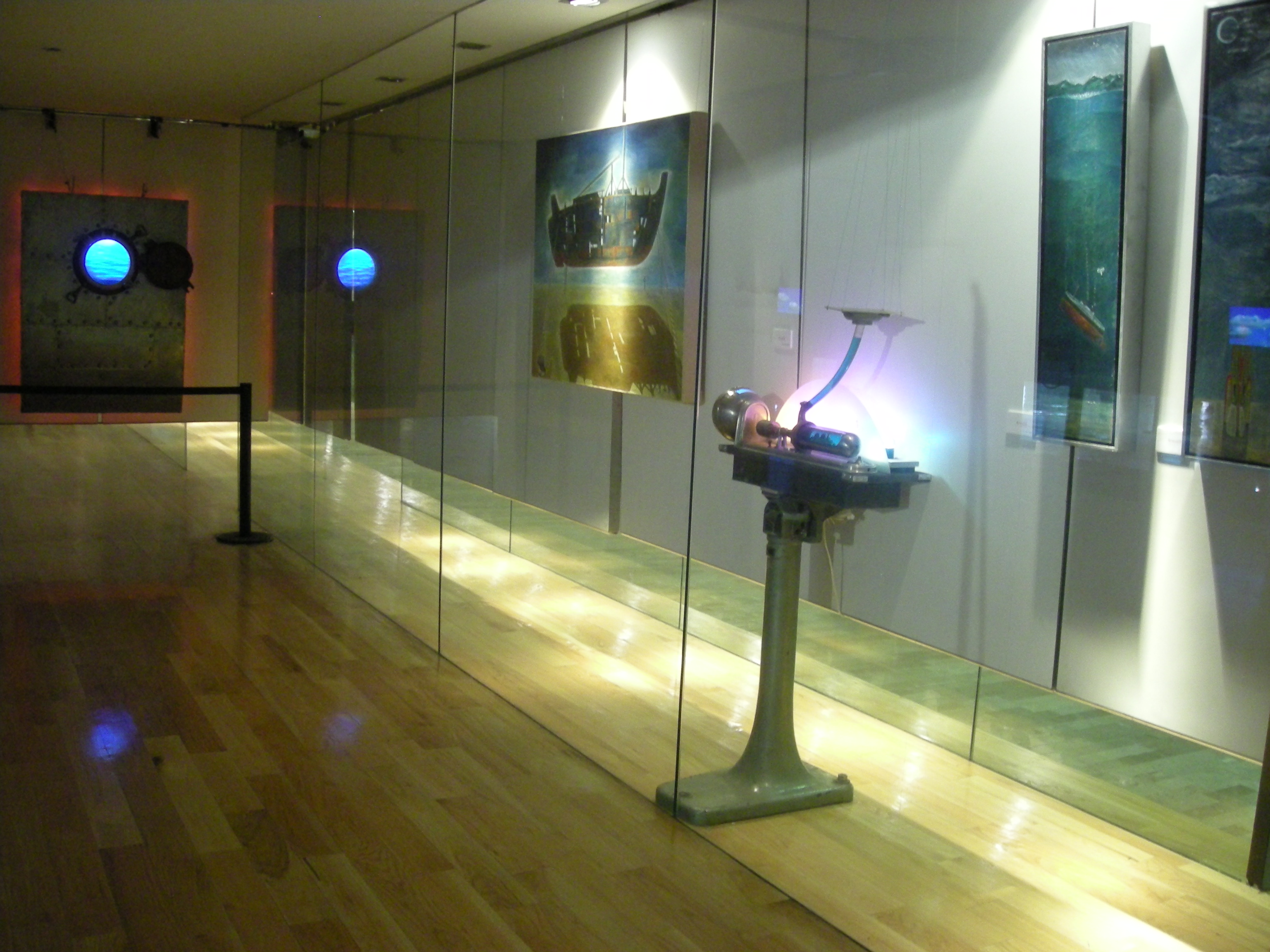 Among the other video-installations are two separate spaces each housing heartrending creations which evoke memories of past methods of transportations symbolic of old buses and ships. The very unusual and fine selection of found objects combined with special lighting and projections, evoke a sense of nostalgia for the lost object which represent forgone times and obsolete vehicles.